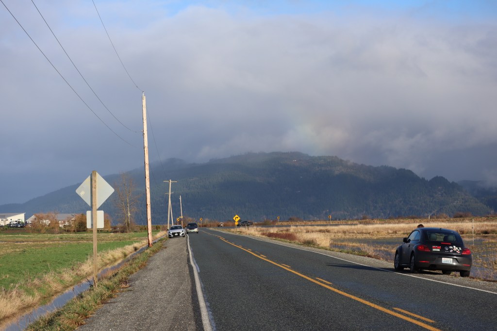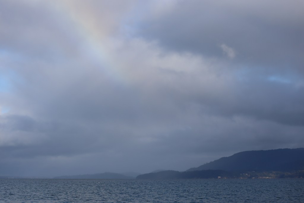 After a mixture of walking and driving up and down that stretch of road, we were satisfied with our views of the owls. We loaded back up in the car and made our way over to Padilla Bay, hoping for a Pacific Loon or Eared Grebe. While we got lucky with some gorgeous views of a rainbow and a charismatic Harlequin Duck, there was no sign of either.
