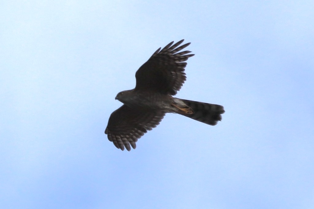 My friend was the first to exclaim that he thought it was a Sharp-shinned Hawk. Cooper’s and Sharp-shinned Hawks, or “Sharpies” for short, are annoyingly similar. The differences are subtle, with enough overlap between the two species that they require pretty close inspection. Cooper’s are much more common, and the only one either of us had seen. Although people report sharpies pretty regularly all over Seattle, especially at the marsh by our college, my friend and I would constantly joke that they’re probably misidentified Cooper’s Hawks.