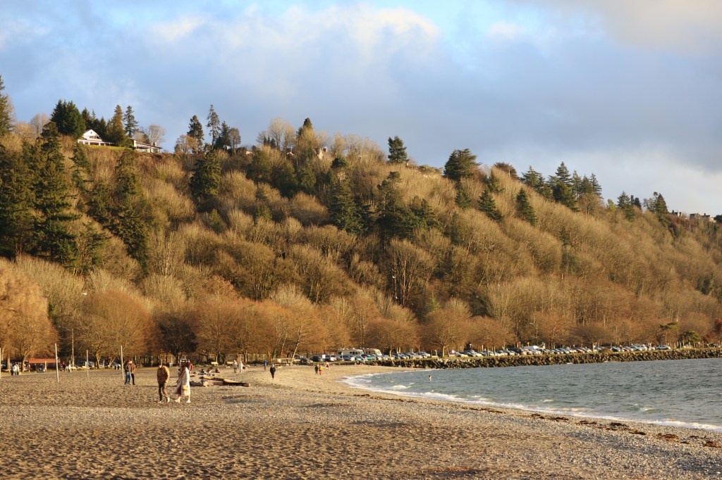 Later that afternoon, after I’d dropped off my friend and spent some time warming up, I was feeling restless. The snow from the morning didn’t stick and the clouds were starting to part. With a scarf and thermos full of hot chocolate, I set out for an early sunset at Golden Gardens, a sandy beach on the west side of Ballard. The point was to enjoy my own company and admire the beach, NOT look for birds.