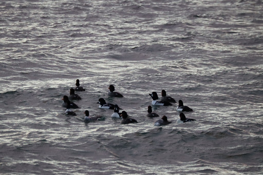 So of course, I brought my camera and binoculars. I saw a couple grebes, none of which were Eared, and an adorable flock of diving Barrow’s Goldeneyes right off the shore. I sat on a log and watched them in the fading winter light, snapping a few pictures, until it got too dark and cold. I was looking forward to birding again when it was warmer.