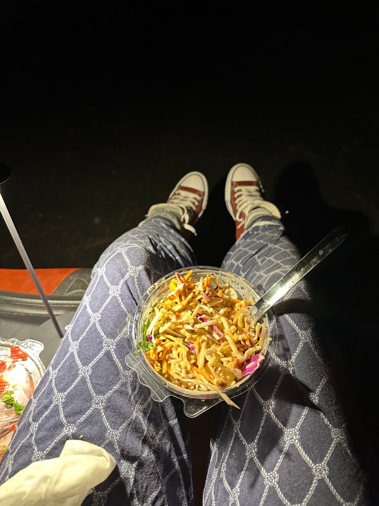 I updated my friends and family on my whereabouts for safety (aka, I texted them a picture of my food captioned “friday night activities”). Before starting my trip, I had such grand plans of catching up on reading in the evenings, or doing last-minute preparations for what hotspots I’d visit and the birds I’d see. Instead, I made it through approximately two pages of my book before I realized I was too tired to read and honestly too tired to do anything but sleep. It was humid, and the car was hot and stuffy, but I still passed out around 8:45pm.