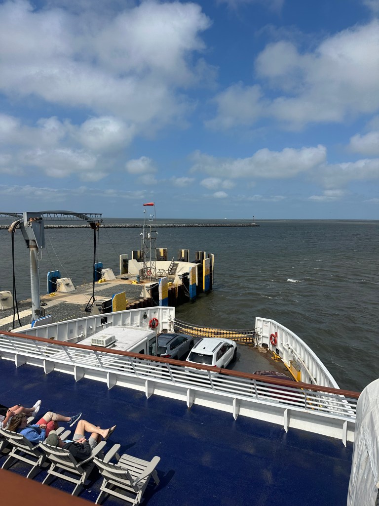 The people behind me in line, an older couple with a giant white van, spotted my Santa Cruz shirt and struck up a conversation. We talked about living in California, as they’d spent a few years there, and they graciously gave me a shirt and some stickers from their recent surfing competition in the Outer Banks. After that, the rest of the ferry terminal was not as interesting, but the boarding process went smoothly.