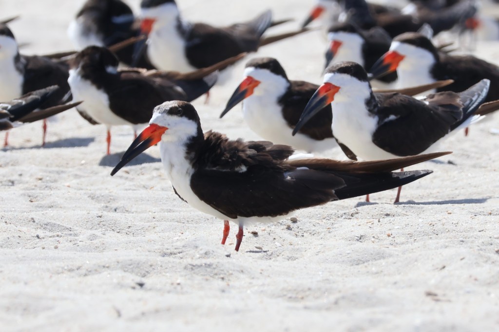 No amount of pictures can prepare you for seeing a bird in person. It doesn’t matter what kind. The skimmer flock had adults and juveniles alike, all with the same cartoonish beak, and I couldn’t take my eyes off them. I sat cross-legged in the hot sand to watch them, getting a well-timed picture of one yawning. The search and subsequent satisfaction was exactly why I loved birding, and reminded me why I do what I do. The skimmers alone made up for the emotional turmoil and bad luck of my trip, and made me more appreciative of the natural world and all that is has to offer (on either coast). I bid them farewell and ordered a well-earned iced latte for my drive home, content with my weekend.