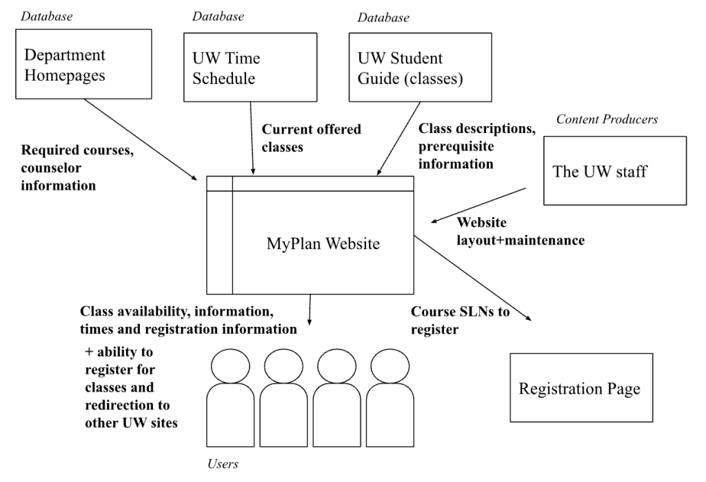 UW MyPlan is a tool for students to search through available courses and add them to a plan. However, unless students are already familiar with how to use it, a lot of the information is scattered in different places. The main problems my team targeted included:
