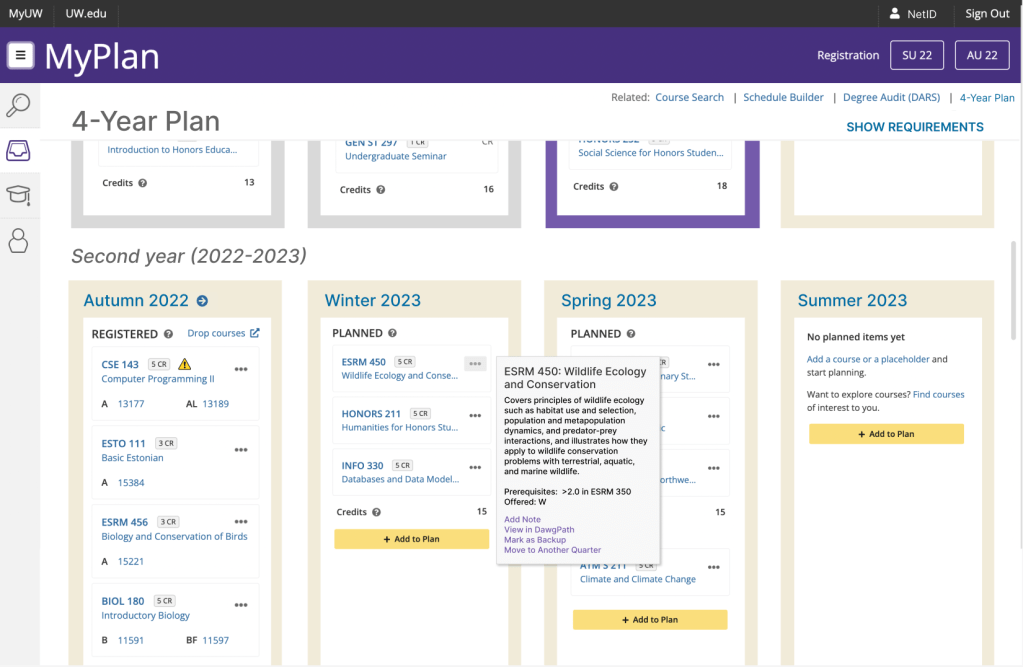 - Outdated information: although this is also a problem with the current MyPlan, showing more class information means featuring more information that may become outdated. If students aren’t frequently updating their four-year plan, they may miss changing requirements or not notice if a class is no longer offered during a quarter.